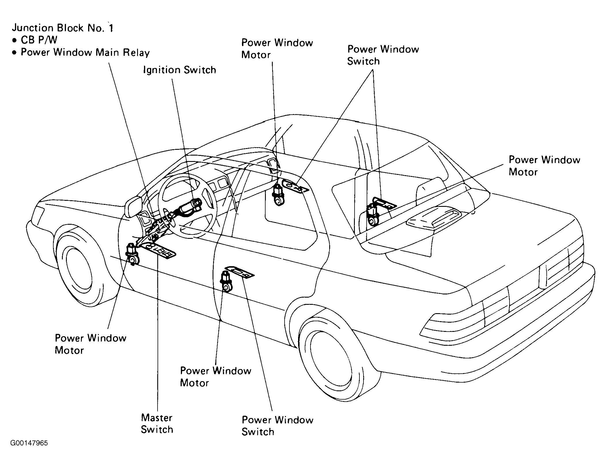 | Power Window Main Relay | In Junction Block No. 1. See Fig 1 & Fig 2. |