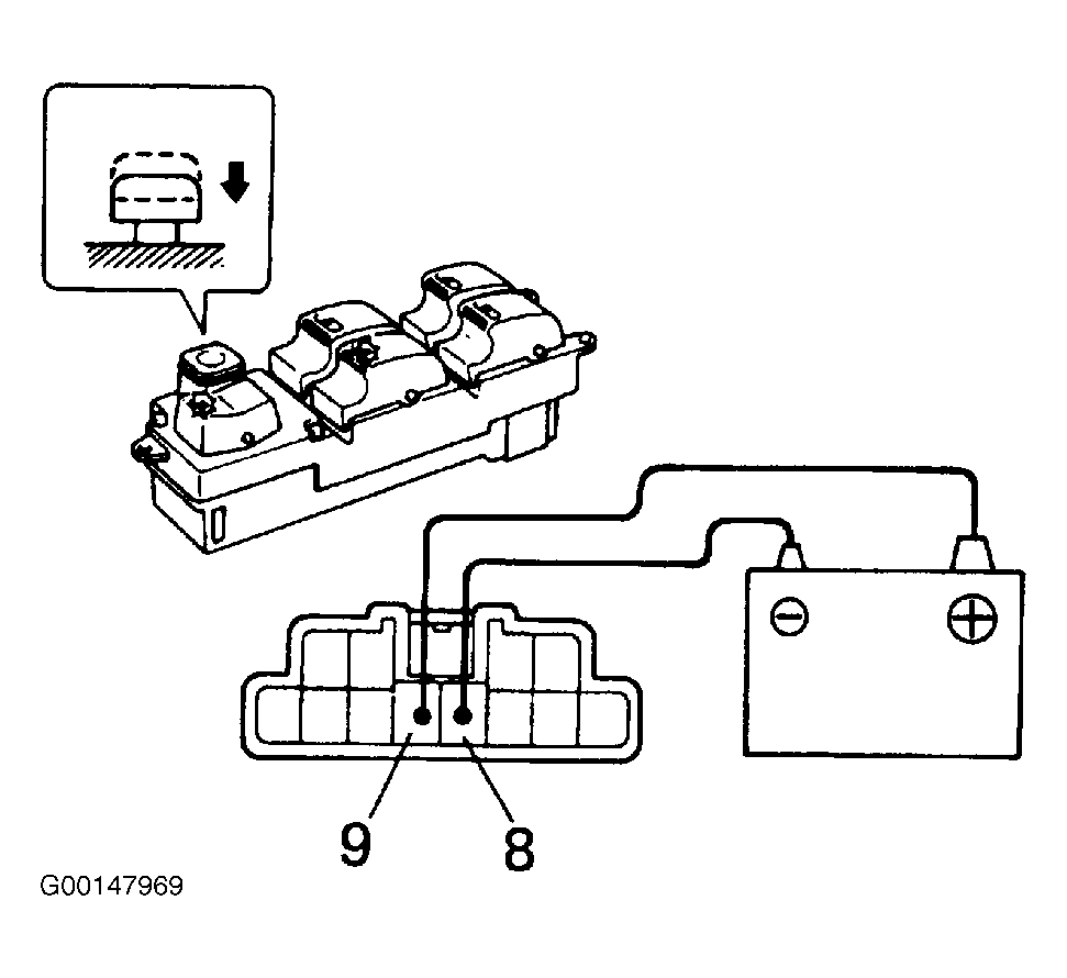 - Set the window lock switch to the lock position, see Fig 2. Check that all the passenger's power window switch illuminations go out. If operation is not as specified, replace the master switch. See POWER WINDOW MASTER SWITCH .