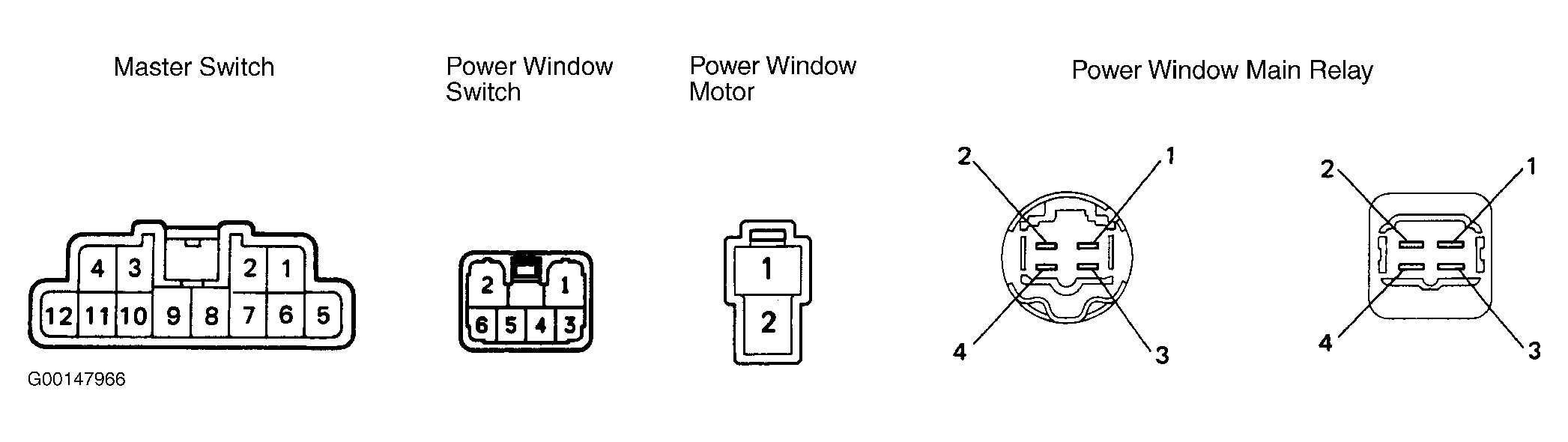 To identify power window system connectors, see