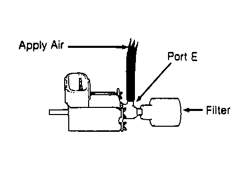 - Apply battery voltage between VSV terminals. Apply air to port E. See Fig 1. Air should flow from port E to filter. If air does not flow as indicated, replace VSV.