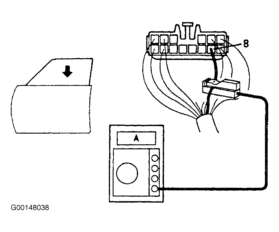 2. Attach a current measuring probe to terminal 8 of the wire harness. See Fig 1.