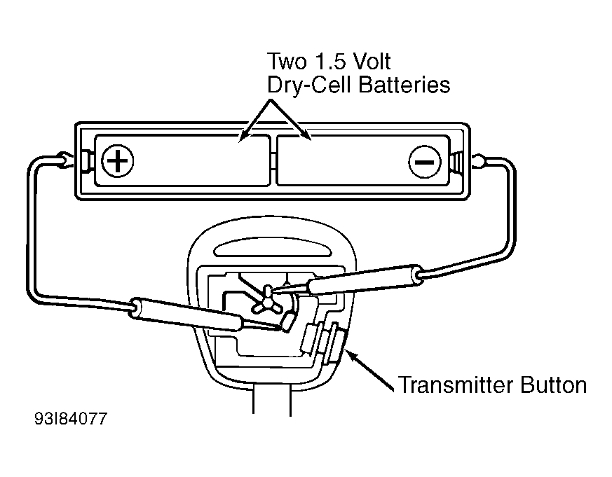 - Remove screw from ignition key. Remove cover, "O" ring and battery. Connect 2 new 1.5 volt dry-cell batteries in series. Connect positive battery lead to transmitter battery receptacle side terminal. Connect negative battery lead to the transmitter bottom terminal. See Fig 1.