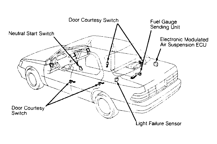 | Elec. Modulated Air Suspension | In right rear corner of luggage compartment. See Figure. | ||