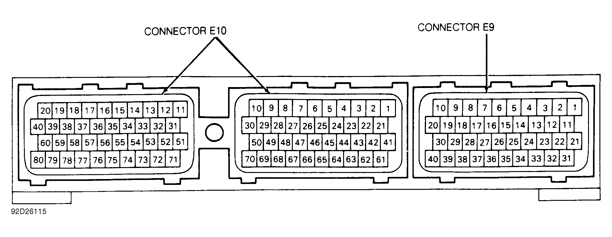 2. Turn ignition on. Using a DVOM, measure voltage between ground and ECU terminals E9-33, E10-69, E9-1, E9-31 and E9-32. See Fig 2. Battery voltage should be present.
