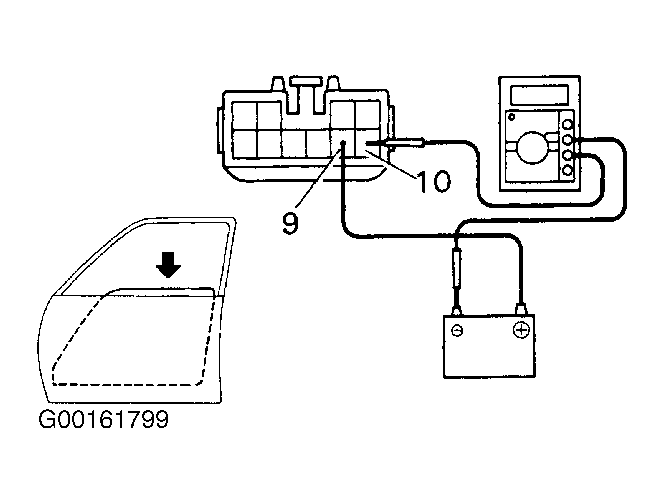 - Check that the current increases up to approximately 14.5 amperes or more when the window stops going down. If operation is not as specified, replace the master switch.