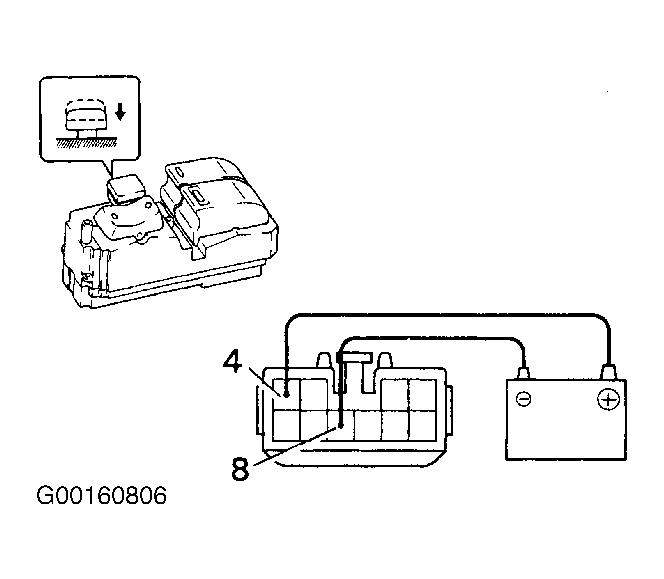 - Connect the positive (+) lead from the battery to terminal 4 and the negative (-) lead to terminal 8, and check that all the illuminations light up. See Fig 1.