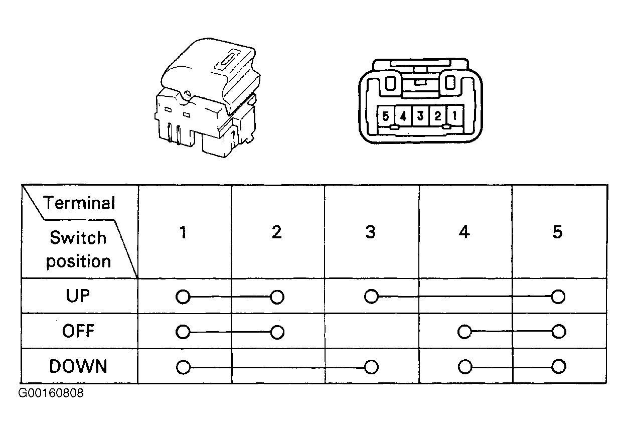 To test the continuity of the power window switch, see Fig 1. If continuity is not as specified, replace the switch.