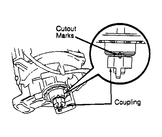- Ensure No. 1 piston is still at TDC of compression stroke. Install new "O" ring onto distributor housing. Lightly coat "O" ring with oil. Align cut-out marks of distributor coupling and housing. See Fig 1. Install distributor, and lightly tighten hold-down bolts.