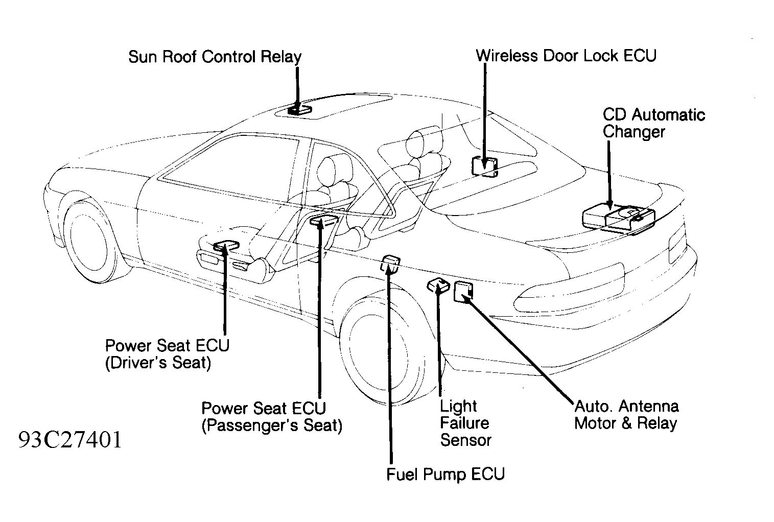 | Wireless Door Lock | Behind right rear quarter panel, below window. See Figure. | ||