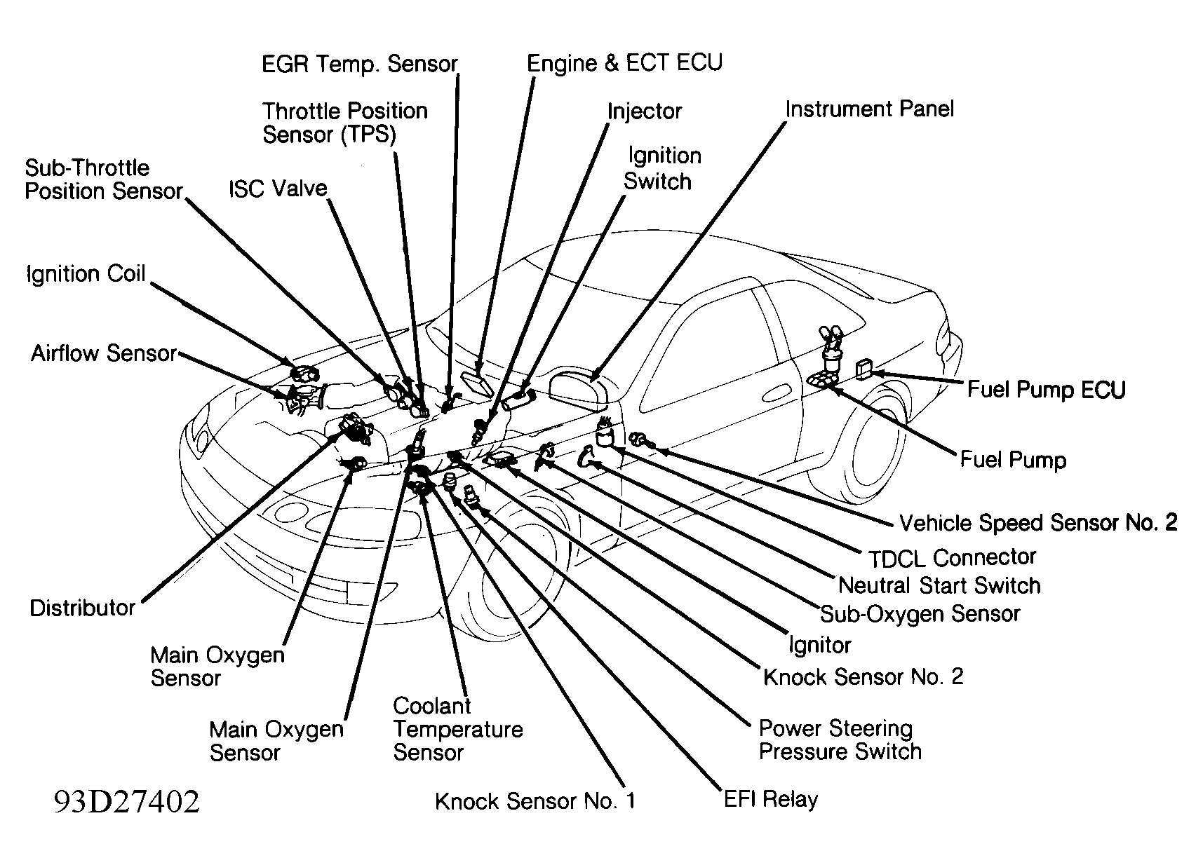| Elec. Controlled Trans. (ECT) | Under left front floorboard. See Figure. | ||