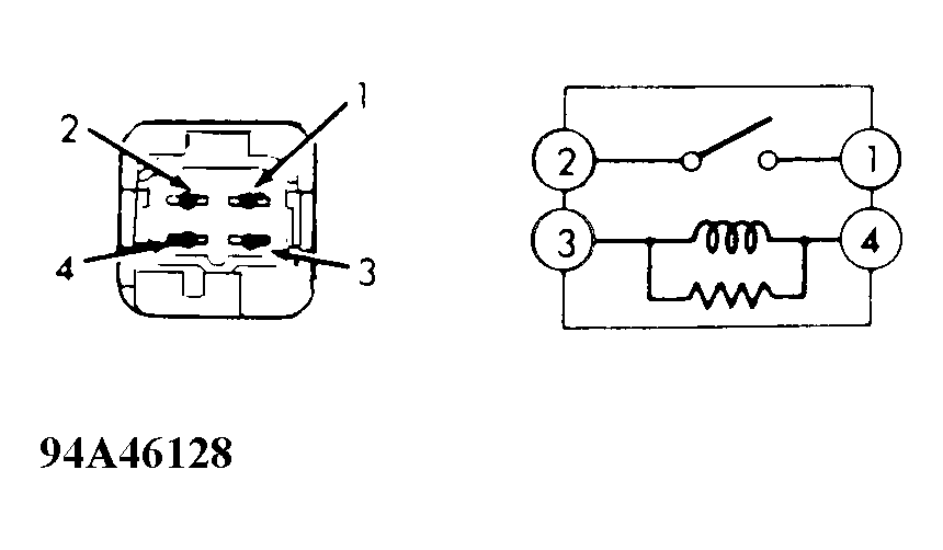 - There is continuity between terminals No. 2 and 4 when battery voltage is applied across terminals No. 1 and 3.