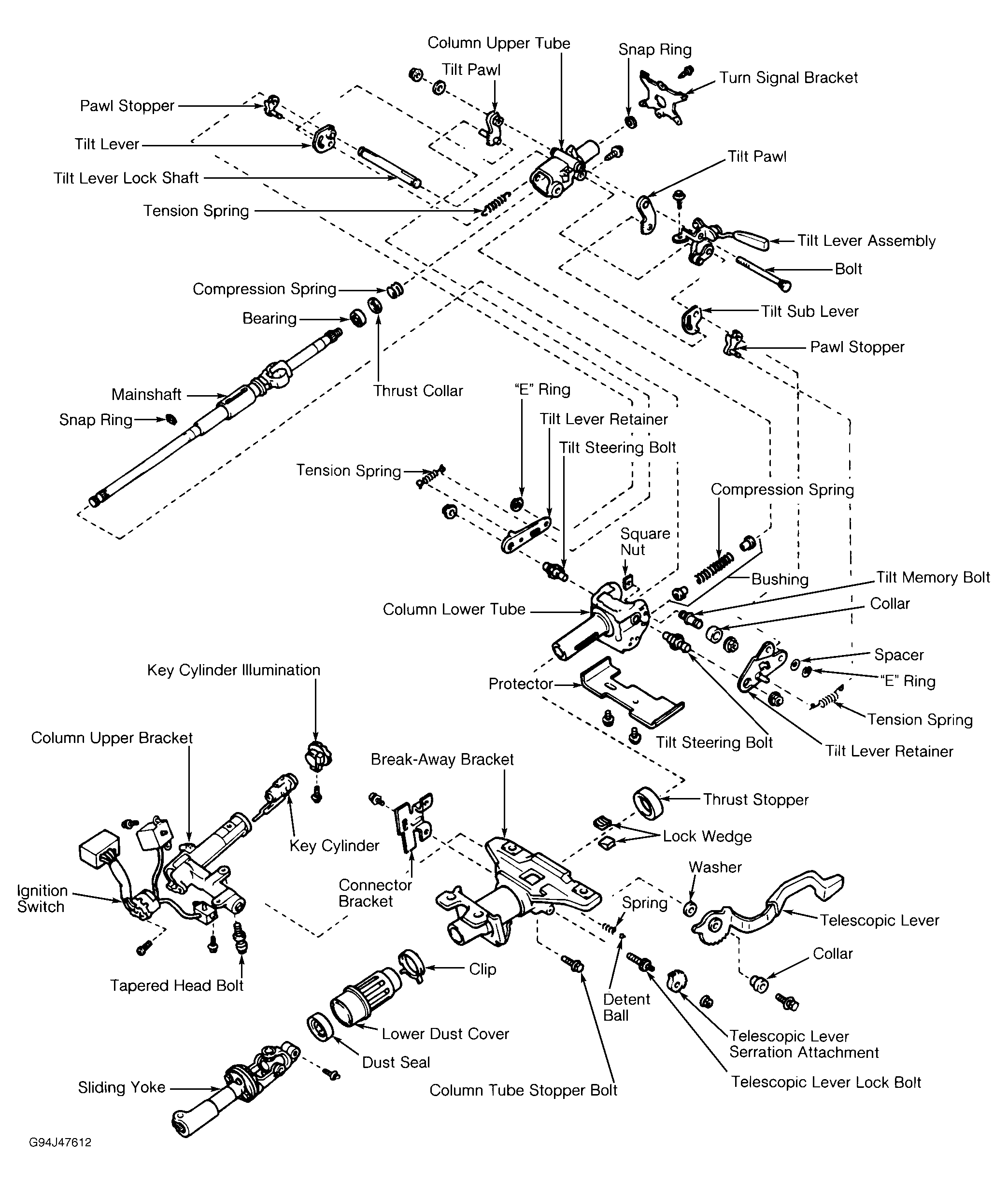 Fig 1: Exploded View Of Manual Tilt & Telescoping Steering Column (Typical)