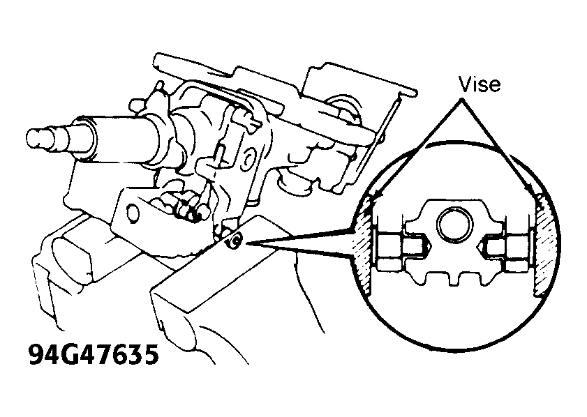 - Assemble steering column in reverse order of disassembly. Lubricate all pivot points and bearing surfaces. Using a vise, press in upper tube tilt steering shafts. See Fig 1.