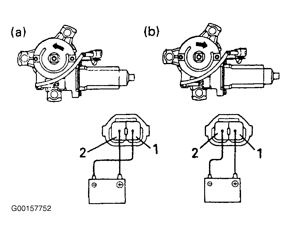 - Connect the positive (+) lead from the battery to terminal 2 and the negative (-) lead to terminal 1, and check that the motor turns counterclockwise. See Fig 1.
