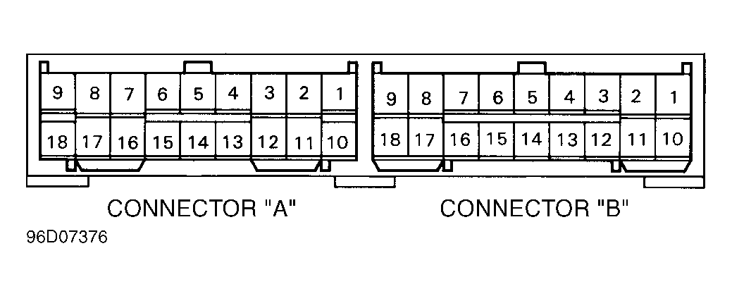 - Disconnect 18-pin connector "A" from front passenger's door ECU. See Figure. Check for continuity in Yellow wire between front passenger's door ECU connector "A" terminal No. 10 and tilt/telescopic ECU 22-pin connector terminal No. 11. If continuity does not exist, repair or replace wiring harness or connectors between front passenger's door ECU and tilt/telescopic ECU. If continuity exists, replace tilt/telescopic ECU.