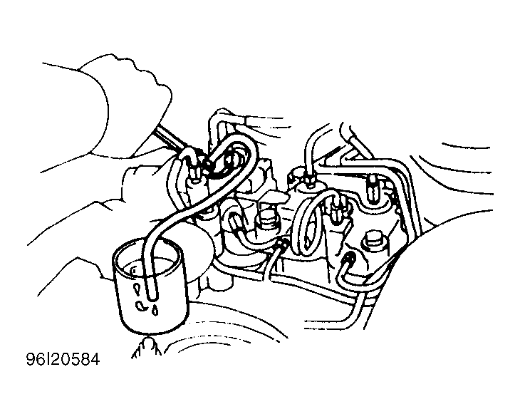 - Ensure master cylinder reservoir is full of brake fluid. Turn ignition off. Bleed TRAC control system by connecting a vinyl tube to accumulator bleeder screw. See Fig 1. Loosen bleeder screw. Start engine and allow TRAC pump motor to operate until all air has been bled from accumulator side. Tighten bleeder screw to 74 INCH lbs. (8.4 N.m) and turn engine off.