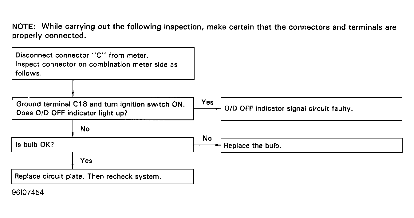 O/D OFF Indicator Abnormal Operation Or Indicator Does Not Illuminate See Figure