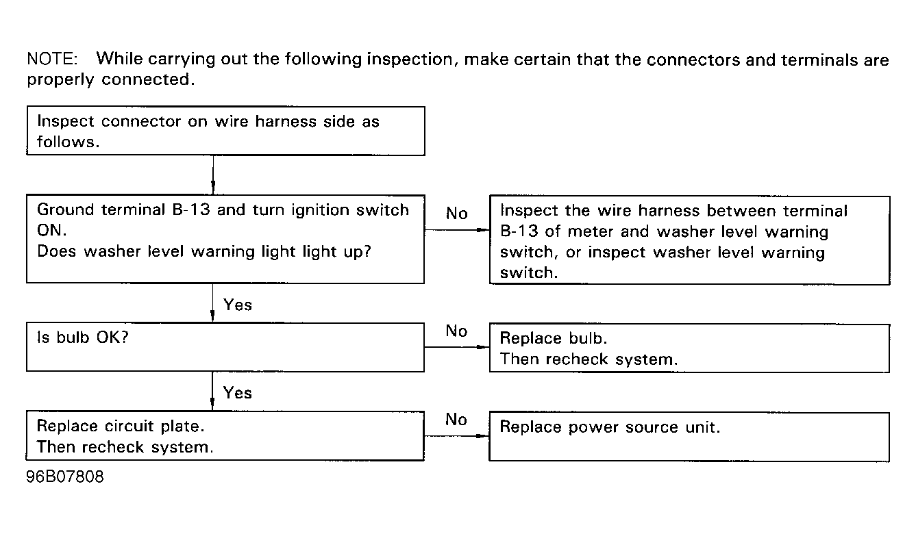 WASHER LEVEL Warning Abnormal Operation Or Warning Does Not Illuminate See Figure