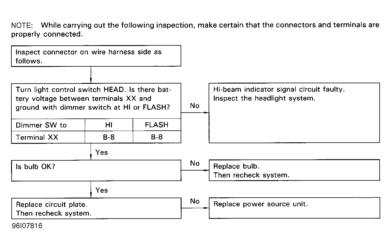 Hi-Beam Indicator Abnormal Operation Or Indicator Does Not Illuminate See Figure