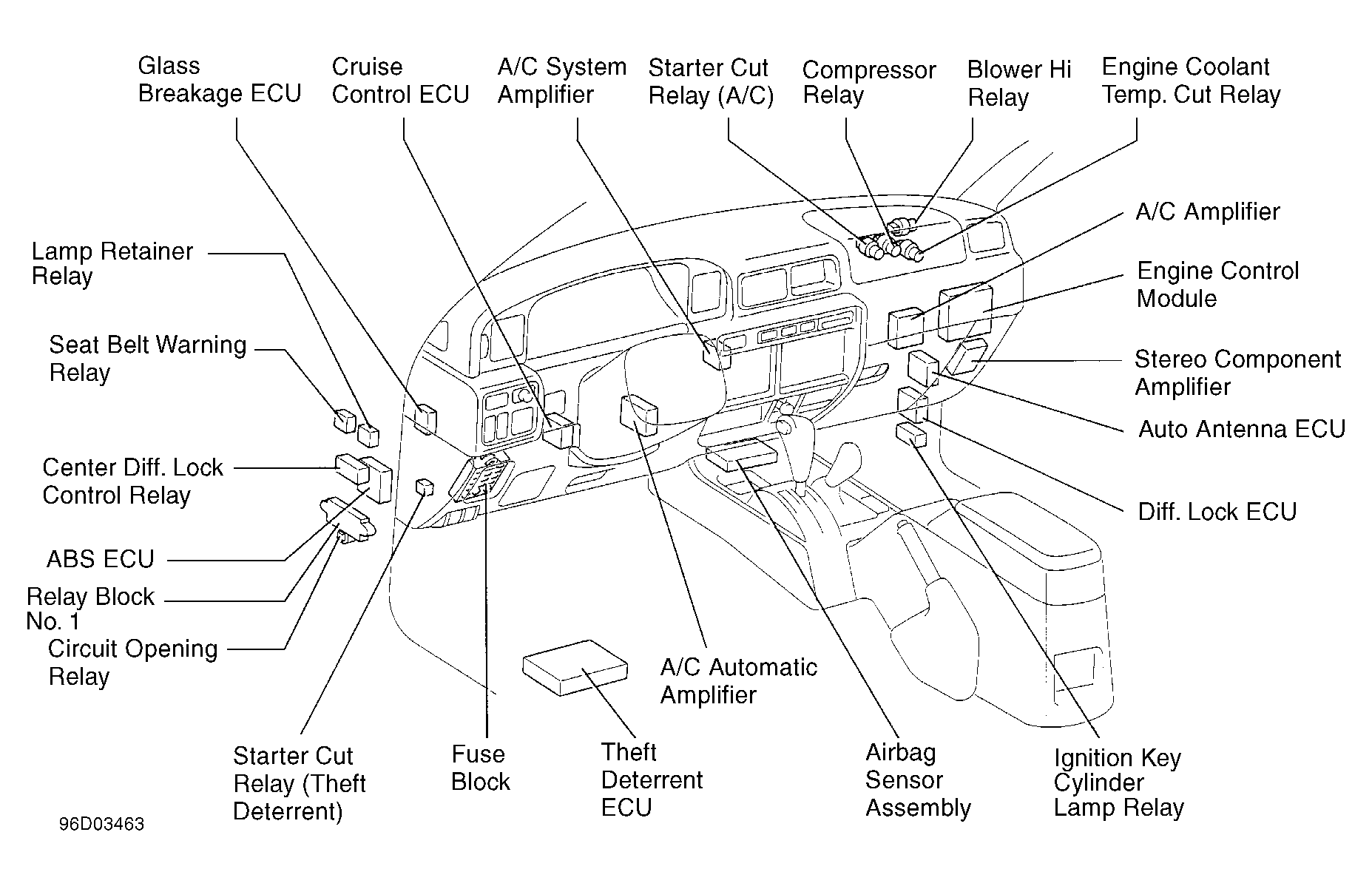 | Theft Deterrent ECU | Under right front floor board. See Figure. |