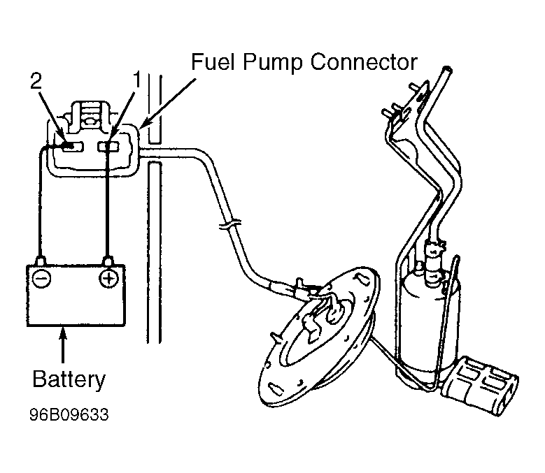 - Remove trunk floor mat. Remove trunk trim panel. Disconnect fuel pump connector. Connect battery voltage to specified terminals on fuel pump connector to activate fuel pump. See Fig 2. Go to next step.