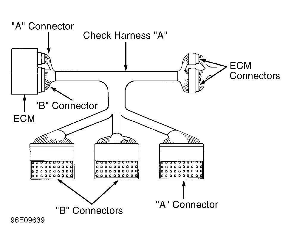3. Connectors and terminals on check harness match those of ECM. Wire colors that are specified in procedures apply to ECM connectors, but may not apply to check harness connectors. To identify connectors and terminals, see appropriate illustration under CONNECTOR IDENTIFICATION .