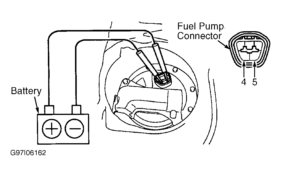 - Remove rear seat cushion. Remove fuel pump access cover. Disconnect fuel pump connector. Connect battery voltage to specified terminals on fuel pump connector to activate fuel pump. See Fig 2. Go to next step.