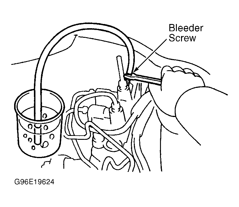 - Connect tube to bleeder screw on TRAC actuator. See Fig 2. Loosen bleeder screw. Connect auxiliary test harness to battery. Bleed fluid with pump operating. See Fig 3. Tighten bleeder screw. Operate pump for additional 30 seconds. Fill reservoir. Remove test harness. Clear diagnostic trouble codes. See CLEARING DIAGNOSTIC TROUBLE CODES (DTCS) .