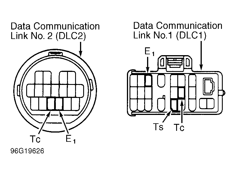 - Turn ignition off. Using jumper wire, connect DLC1 connector terminals Ts and E1. See Figure.