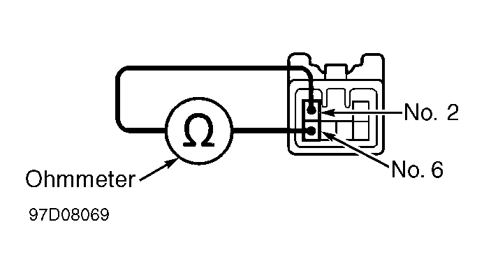 . On SC400 models, measure resistance between combination switch connector terminals No. 2 and No. 6. With auto set switch on, resistance should be more than one megaohm. With auto set switch off, continuity should exist between measured terminals. If resistance is as specified, go to next step. If resistance is not as specified, replace tilt and telescopic combination switch and retest system.