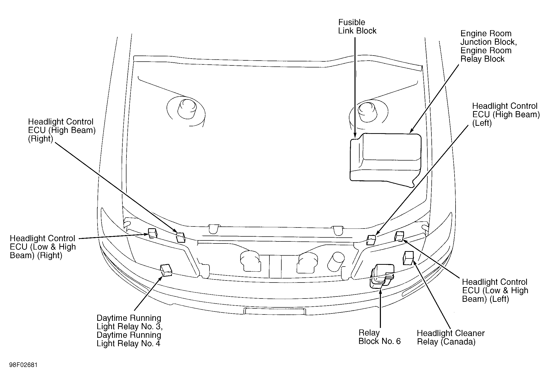 | Relay Block No. 6 | Under left headlight. See Figure. |