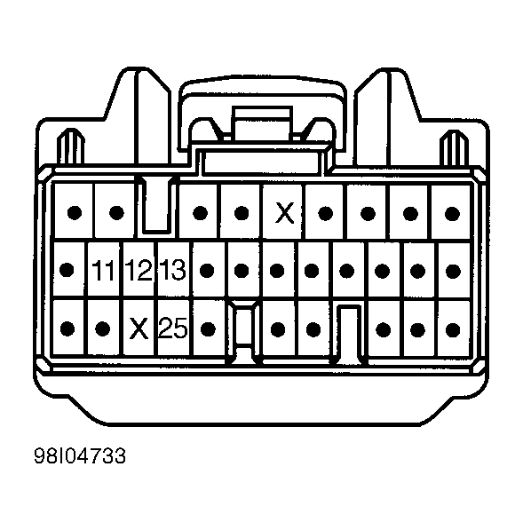 2. Check for continuity between junction block relay cavity terminal No. 5 and starter terminal No. 1 (Black/Red wire). Remove glove box. Using DVOM, backprobe ECM 31-pin connector E7 terminal No. 11 (Gray wire). See Fig 1. Check for voltage with ignition in START position. Repair as necessary.