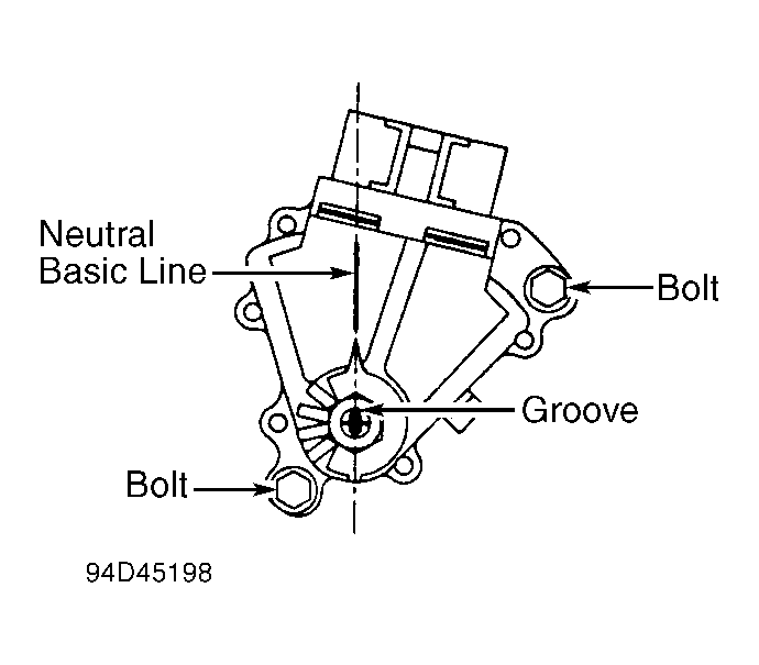 Loosen bolt that secures PNP switch to transmission. Move shift shaft into Neutral (2 detents from Park). Align groove on shift shaft with neutral basic line on PNP switch. See Fig 1 or Fig 2. Tighten bolt.