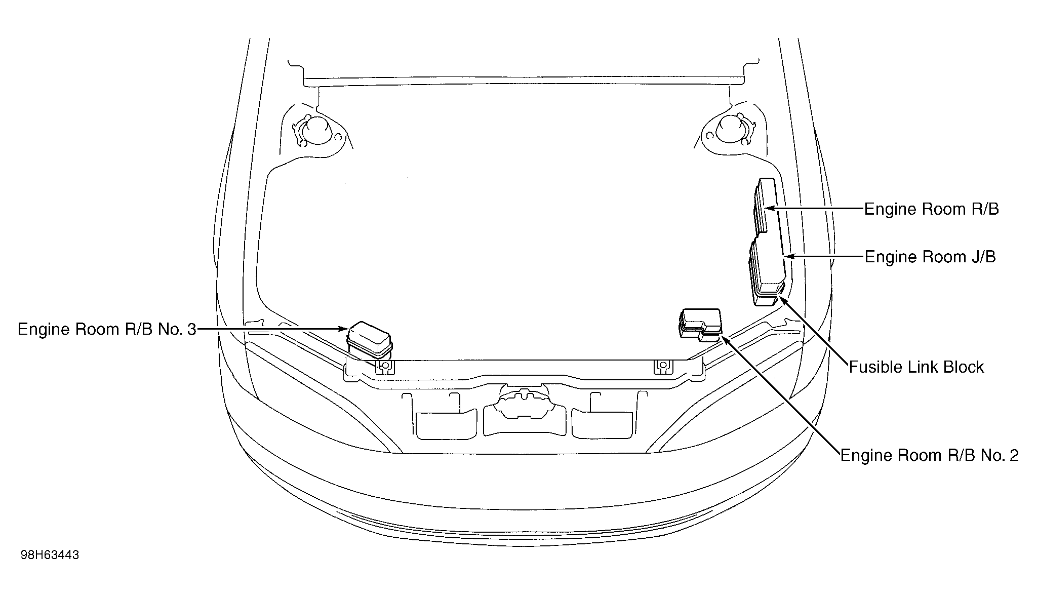| Engine Room R/B No. 3 | In right front of engine compartment, on radiator upper support. See Figure. |