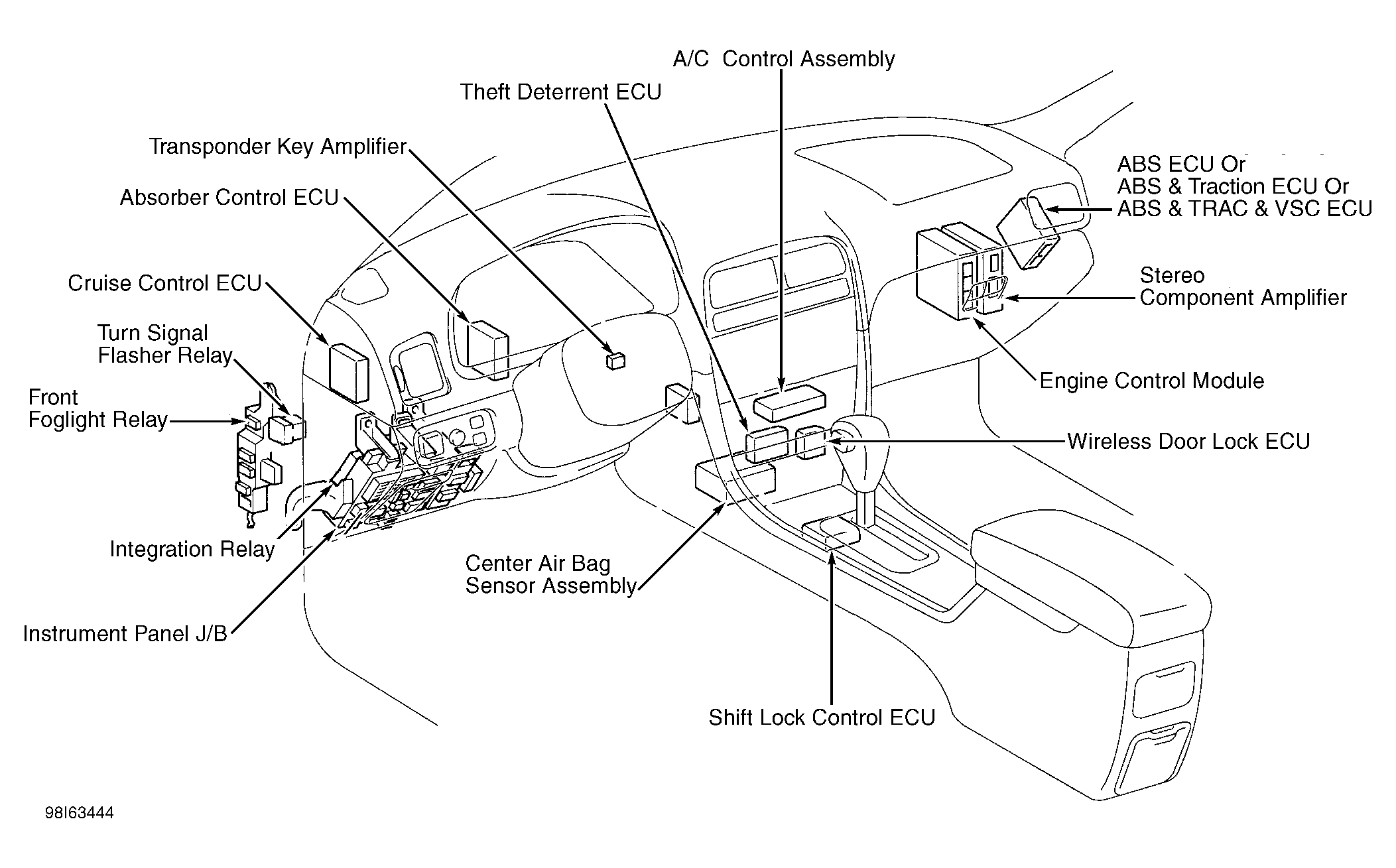 | Instrument Panel J/B | Behind left side of dash. See Figure. |
