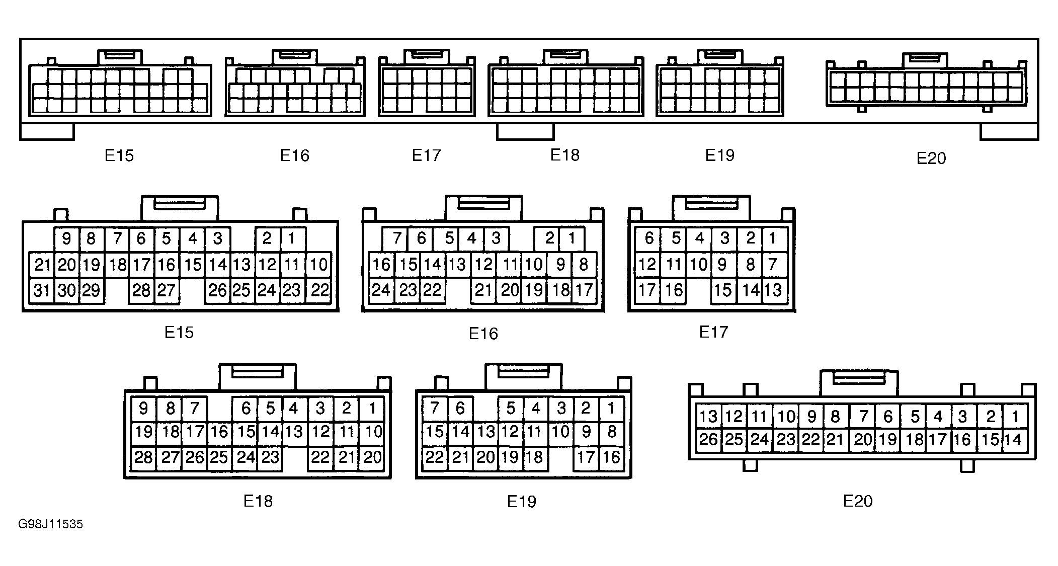 6. Check EFI main relay located in engine compartment fuse/relay box at left front of engine compartment. See RELAYS  under MOTORS, RELAYS & SOLENOIDS. If EFI main relay is okay, check circuit between chassis ground and terminal No. 10 at ECM E19 connector. See appropriate wiring diagram in WIRING DIAGRAMS article. Repair as necessary. If circuit is okay, repair circuit between battery and EFI fuse.