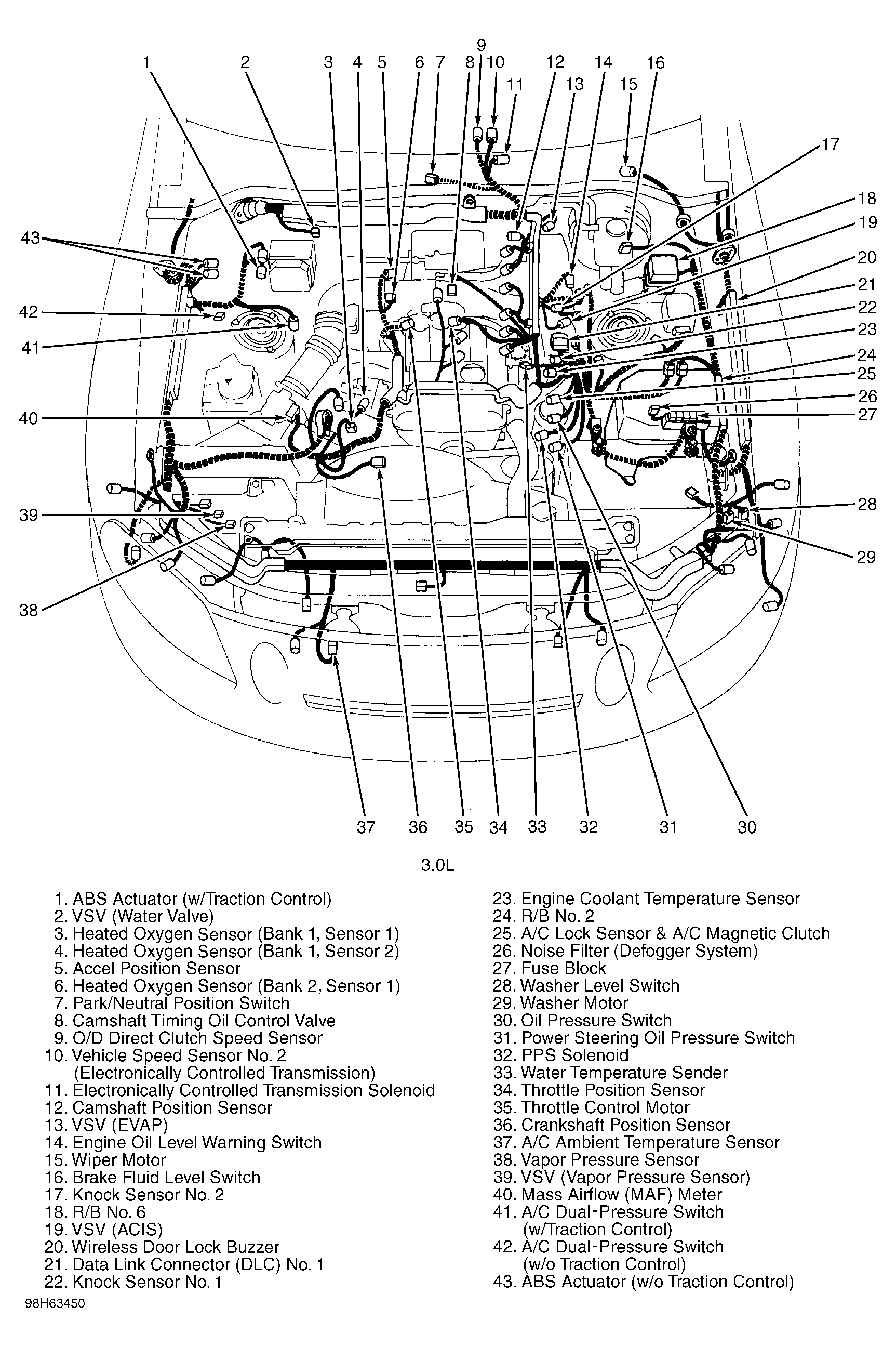 | R/B No. 2 (3.0L) | On left side of engine compartment, behind battery. See Figure. |