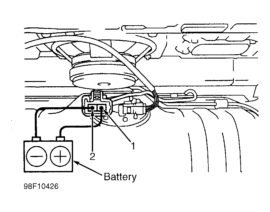 - Remove trim cover from behind rear seat in luggage compartment. Disconnect fuel pump Dark Gray 2-pin connector located near rear speaker. See Figure. Measure resistance between fuel pump connector terminals (component side). Resistance should be 0.2-3.0 ohms at 68°F (20°C). If resistance is as specified, go to next step. If resistance is not as specified, replace fuel pump.