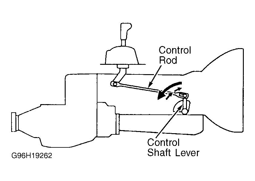 Loosen nut on control rod. See Fig 1. Push control rod fully rearward. Return transmission control shaft 2 notches to Neutral position. Place gear selector lever in Neutral. Hold selector lever lightly toward Reverse position, and tighten control rod nut to 115 INCH lbs. (13 N.m). Start engine and ensure adjustment is correct.