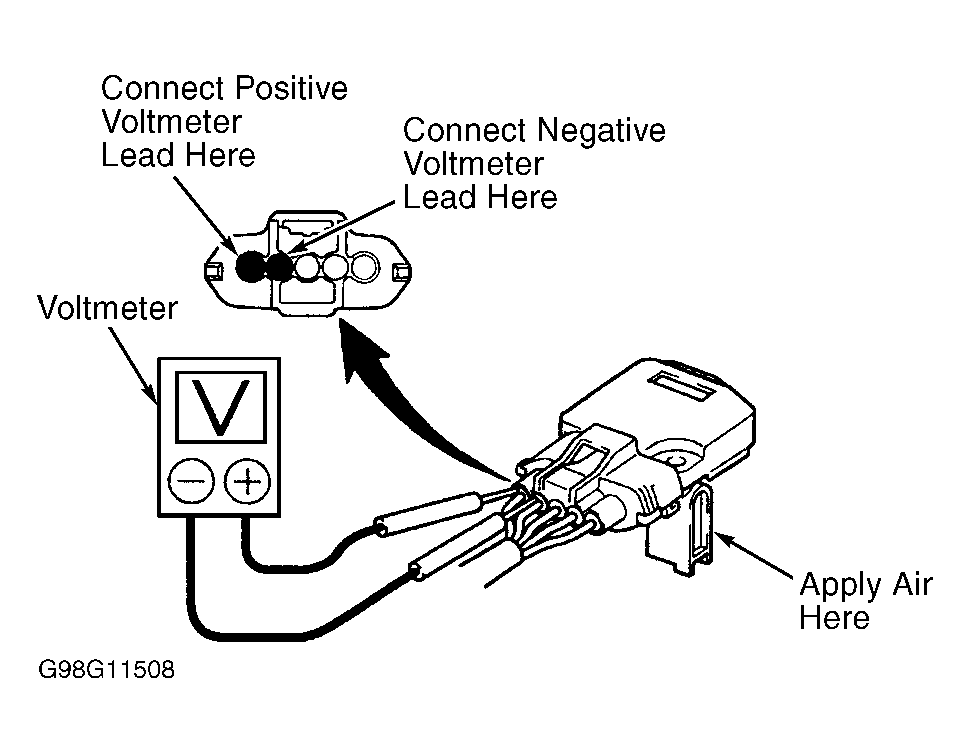 - Turn ignition on. Apply air into airflow meter and note voltage reading. See Fig 2. While air is being applied, voltage reading should fluctuate. Replace airflow meter if voltage does not fluctuate. Remove voltmeter. Reinstall airflow meter.