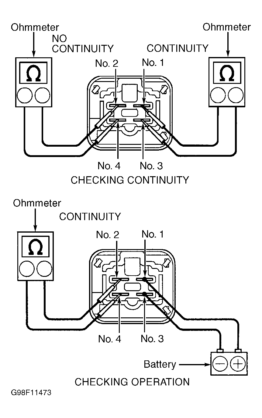 - To test EFI main relay continuity, use ohmmeter to check for continuity and no continuity between specified terminals on EFI main relay. See Fig 1.