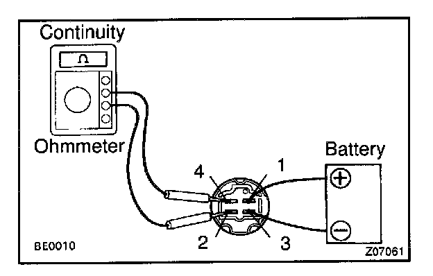b. Using an ohmmeter, check that there is continuity between terminals 2 and 4.
