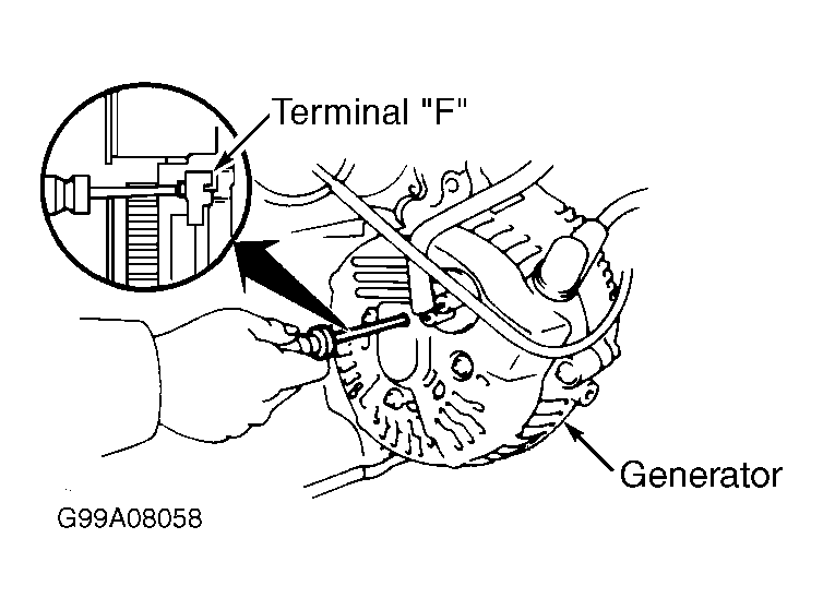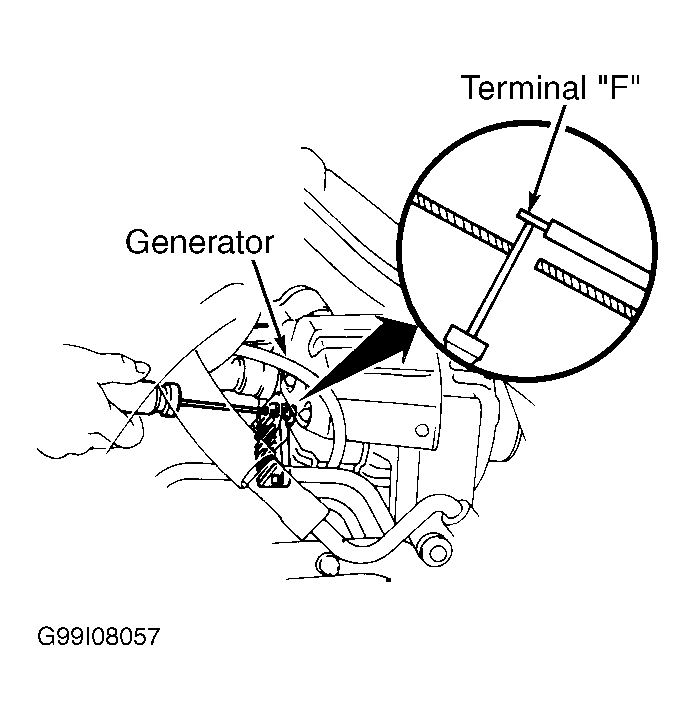 2. If output voltage is low, by-pass regulator (full field generator) by grounding terminal "F" at back of generator. See Fig 1, Fig 2 or Fig 3 . Recheck charging system output voltage. See GENERATOR OUTPUT SPECIFICATIONS  table. If output voltage is high, replace voltage regulator and recheck. If output voltage remains low, repair or replace generator.