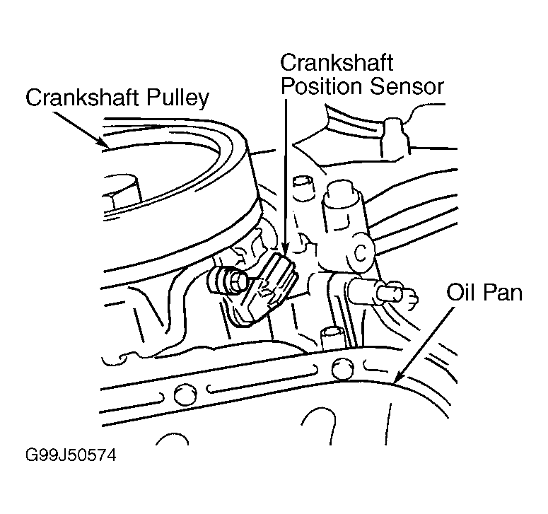 - On LS400, remove lower engine cover and oil pan protector for access to crankshaft position sensor. On SC400, remove lower engine cover for access to crankshaft position sensor. On all models, crankshaft position sensor is located at front of crankshaft, near crankshaft pulley. See Figure. Disconnect electrical connector at crankshaft position sensor.