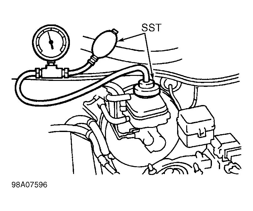 Fig 1: Installing ABS/TRAC Bleeding Tool (SST 09992-00242 & 09992-00350) On Master Cylinder
