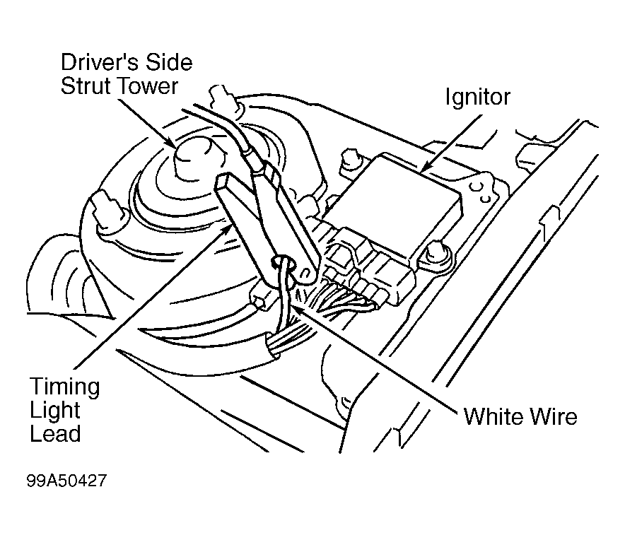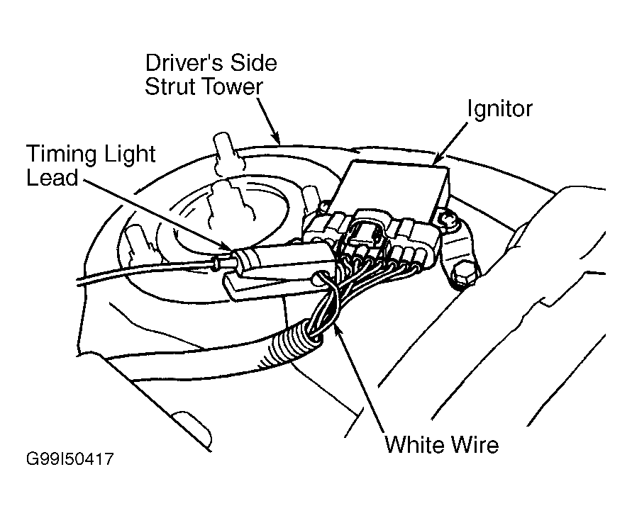 - Connect timing light lead to White wire at ignitor. See Fig 2 and Fig 3