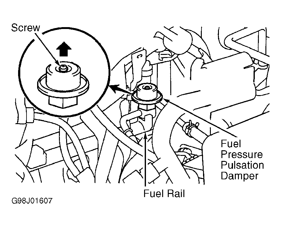 Fig 1: Locating Fuel Pressure Pulsation Damper & Screw (LX470)