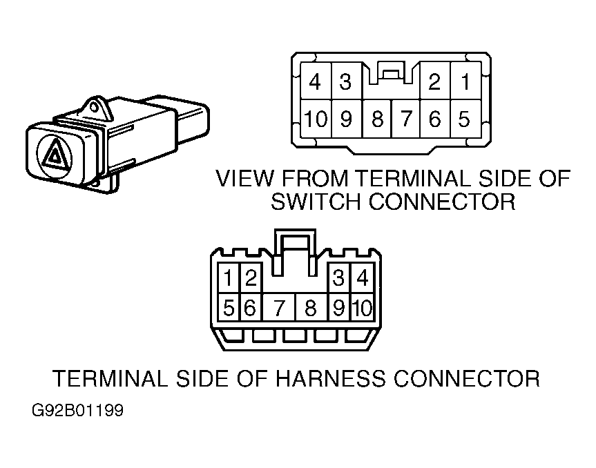 Remove and test hazard switch. See HAZARD SWITCH CONTINUITY TEST table. See Fig 1. If continuity is not as specified, replace hazard switch and retest system operation.