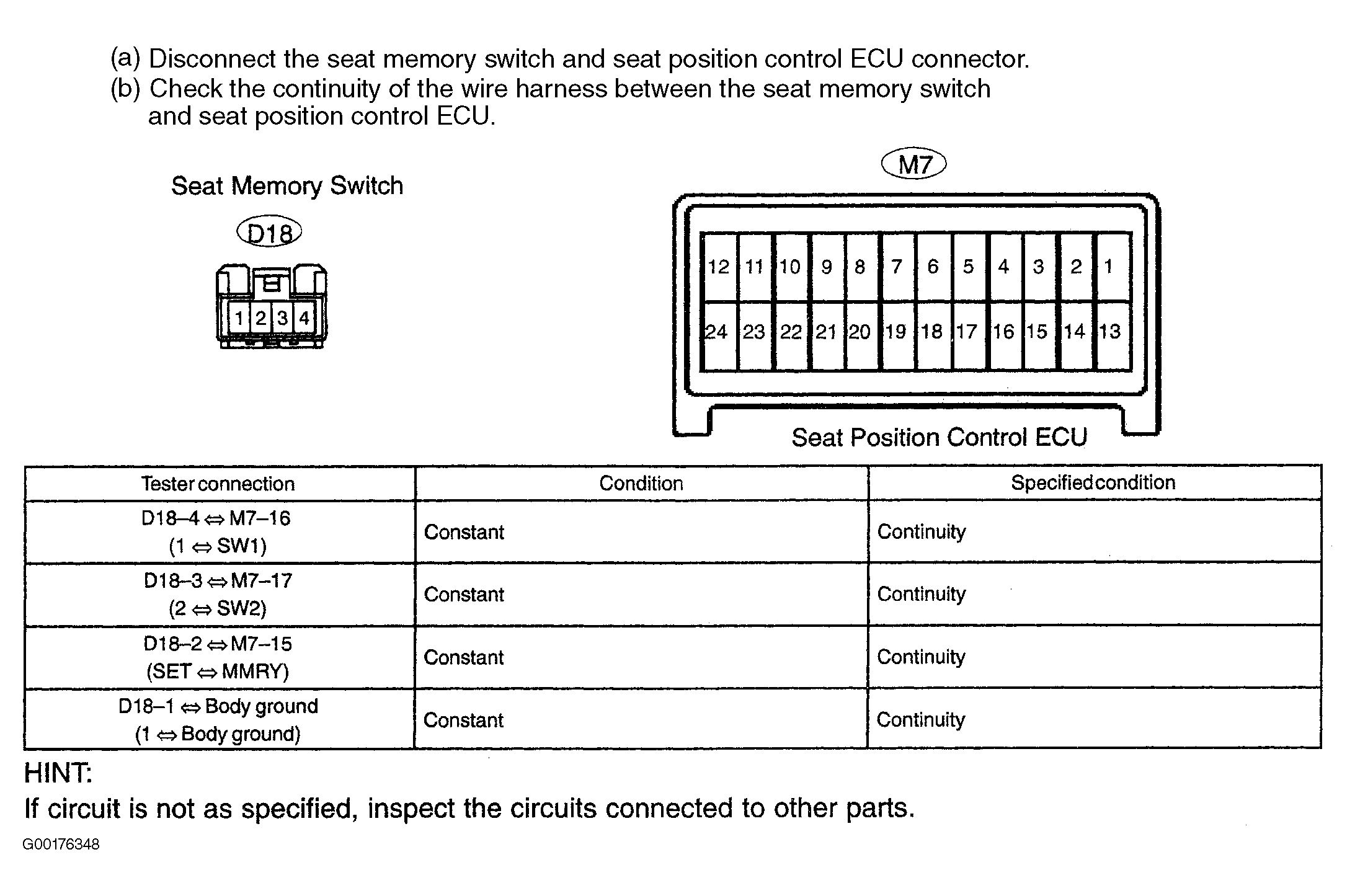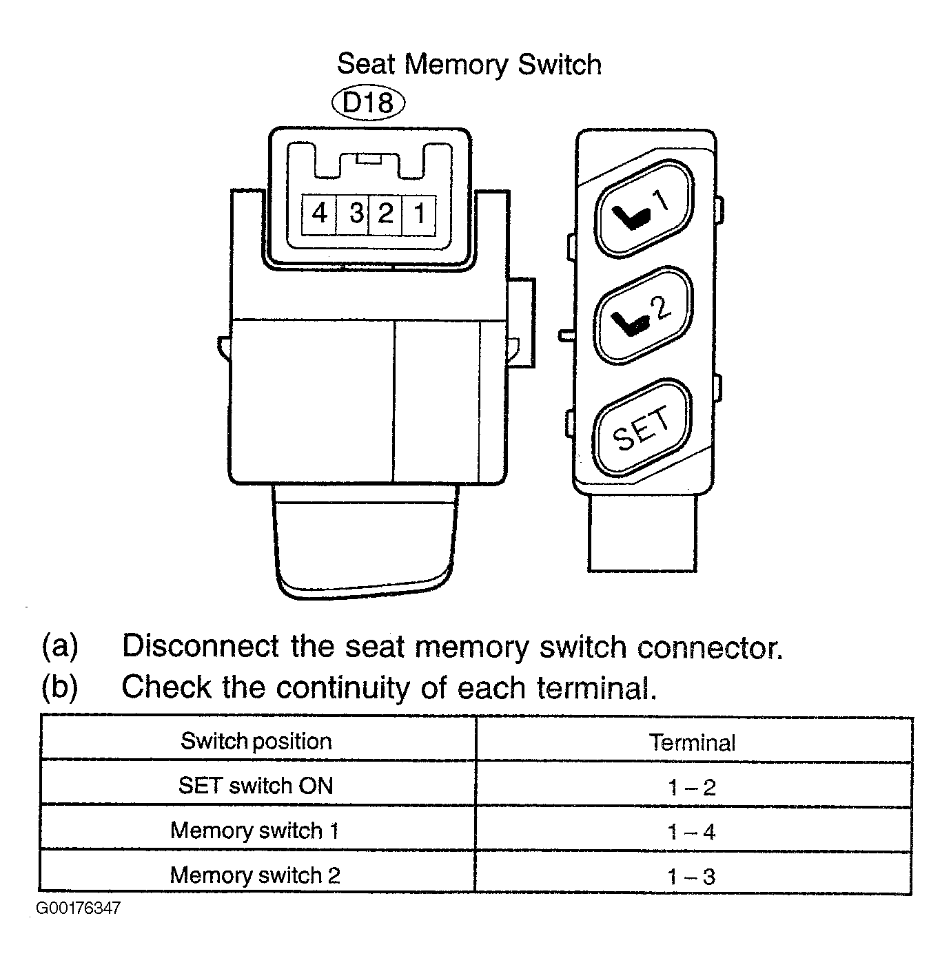 - Inspect the seat memory switch. See Fig 2. If the results are OK, go to the next step. If the results are not good, replace the seat memory switch.
