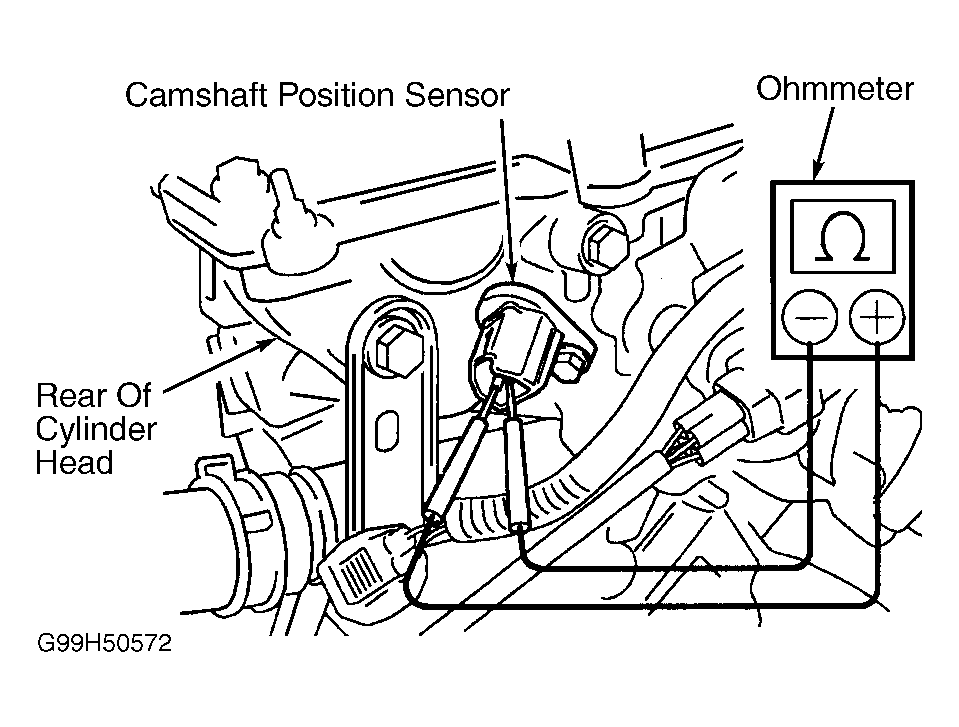 - Using ohmmeter, check resistance between electrical terminals on camshaft position sensor. See Fig 1-Fig 3